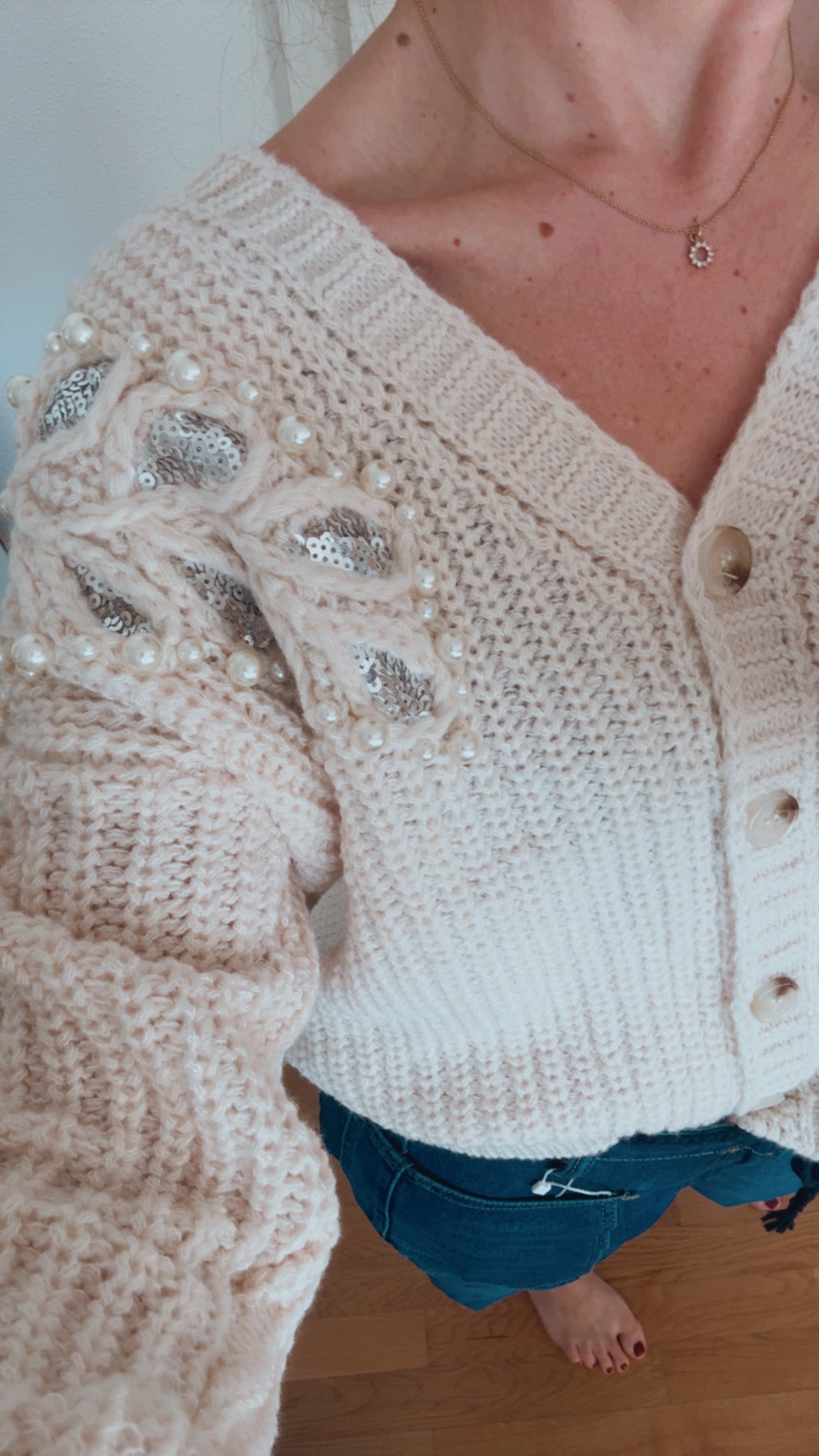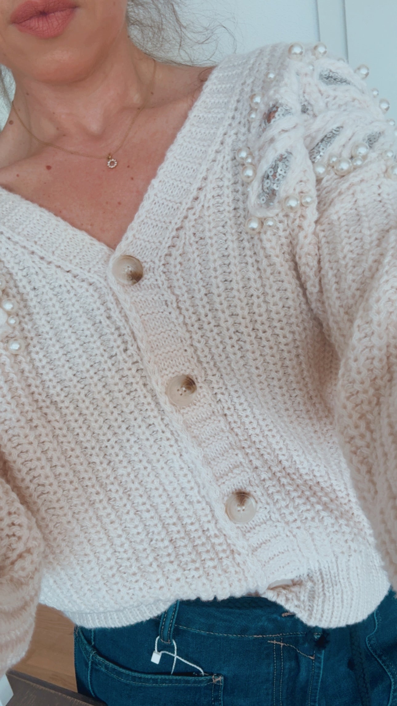 Süsser Cardigan mit Perlen, kurz geschnitten