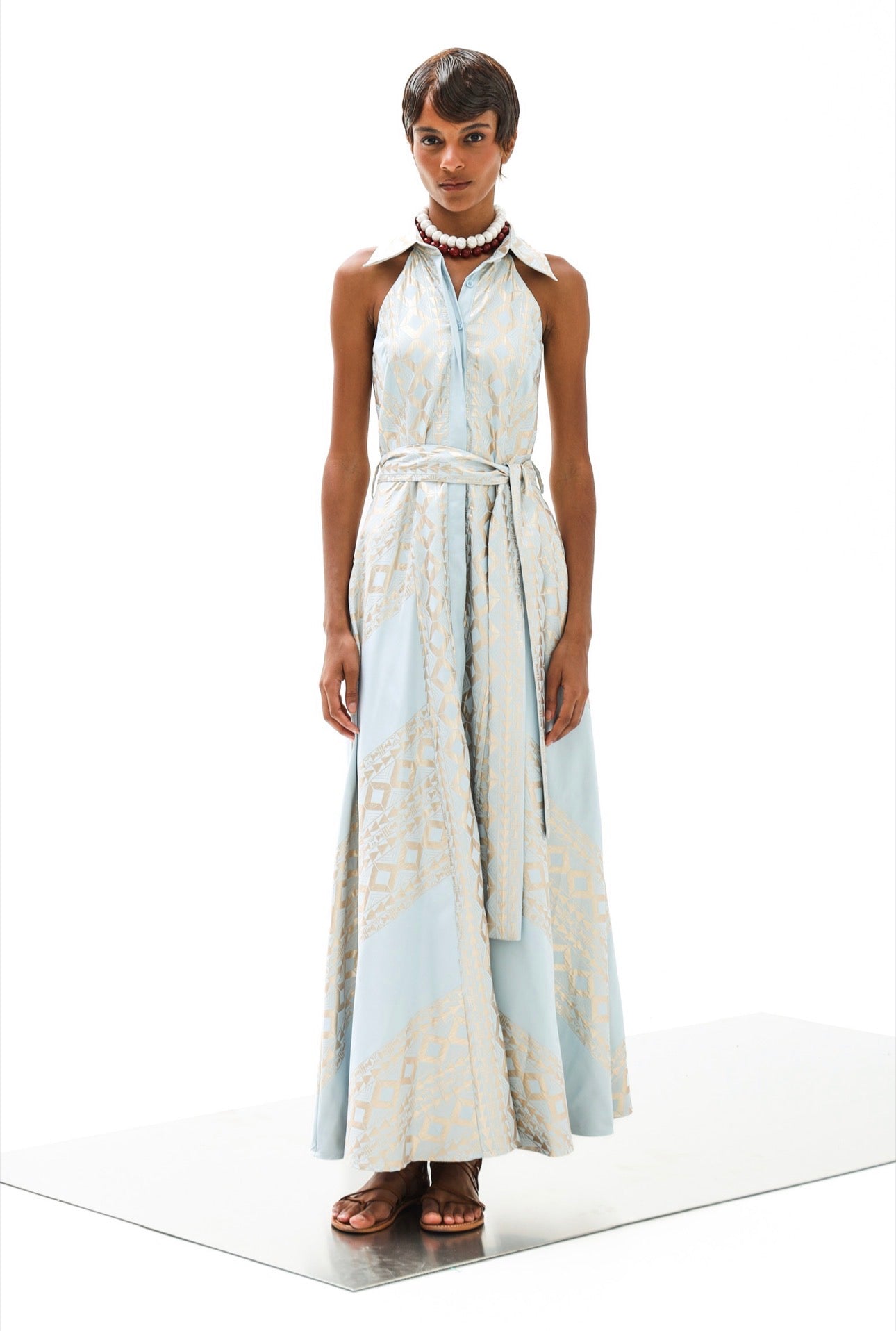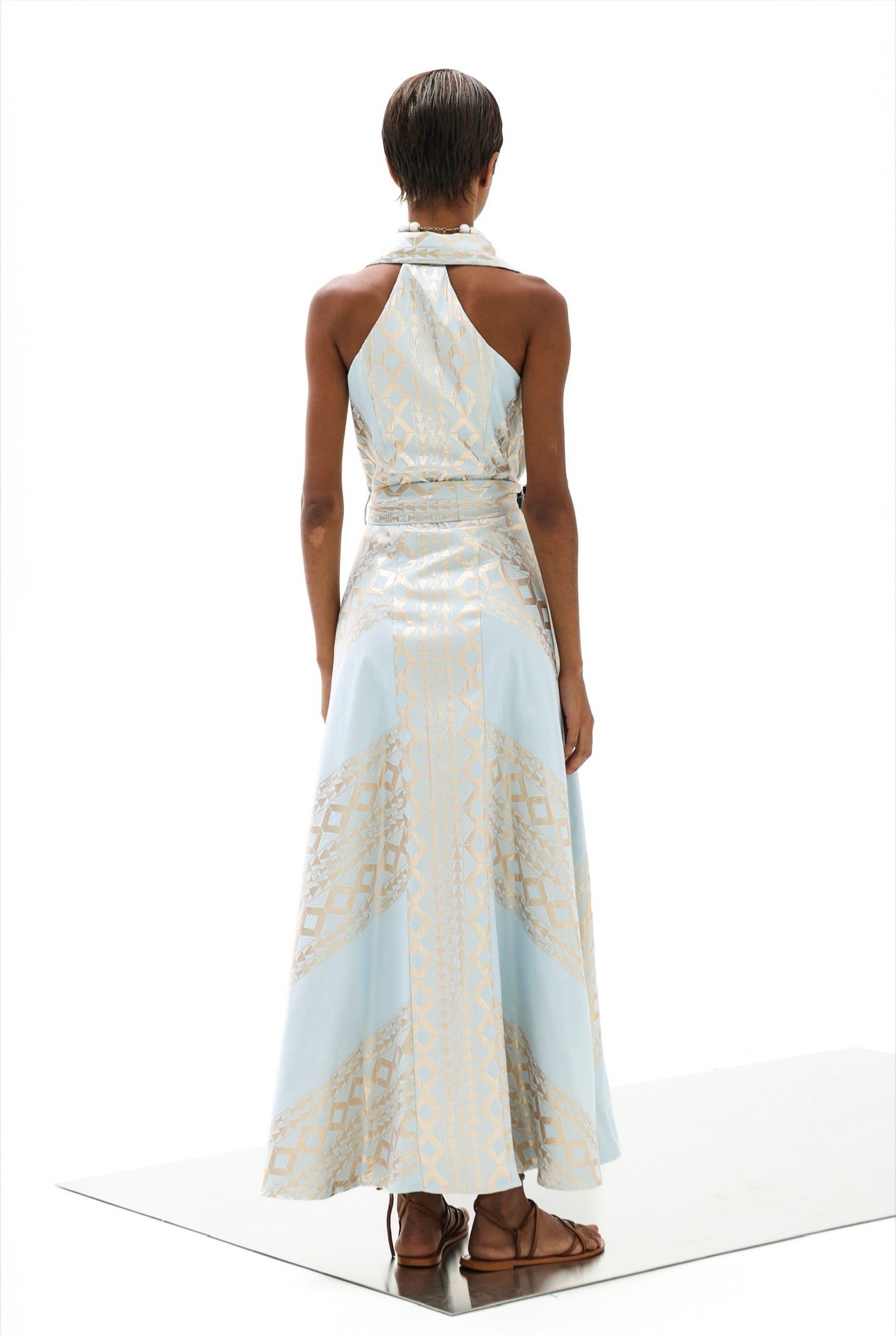 Lace Maxidress Hellblau/Gold